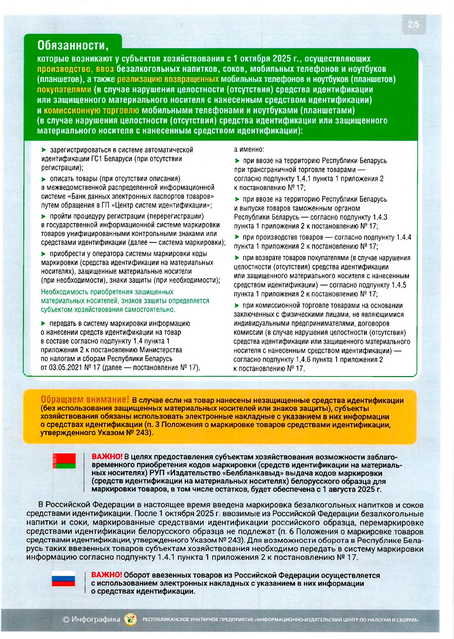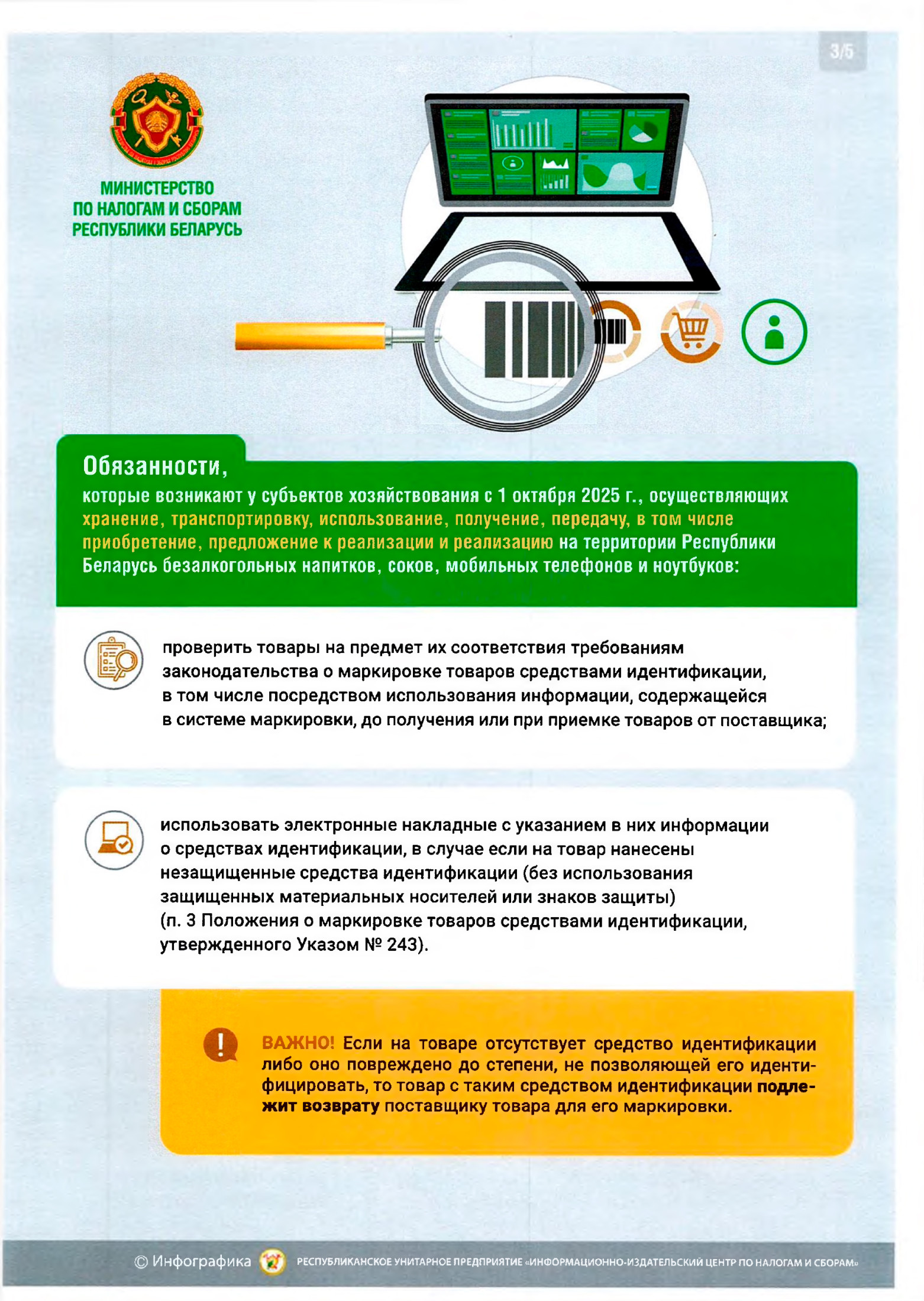 Вниманию субъектов хозяйствования, осуществляющих оборот безалкогольных напитков, соков, мобильных телефонов и ноутбуков