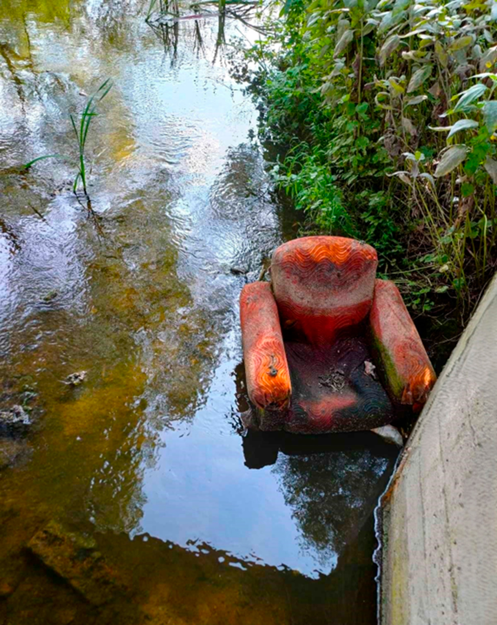 И ещё: тут берег крутой, и коммунальным службам извлечь это кресло будет не так-то просто.